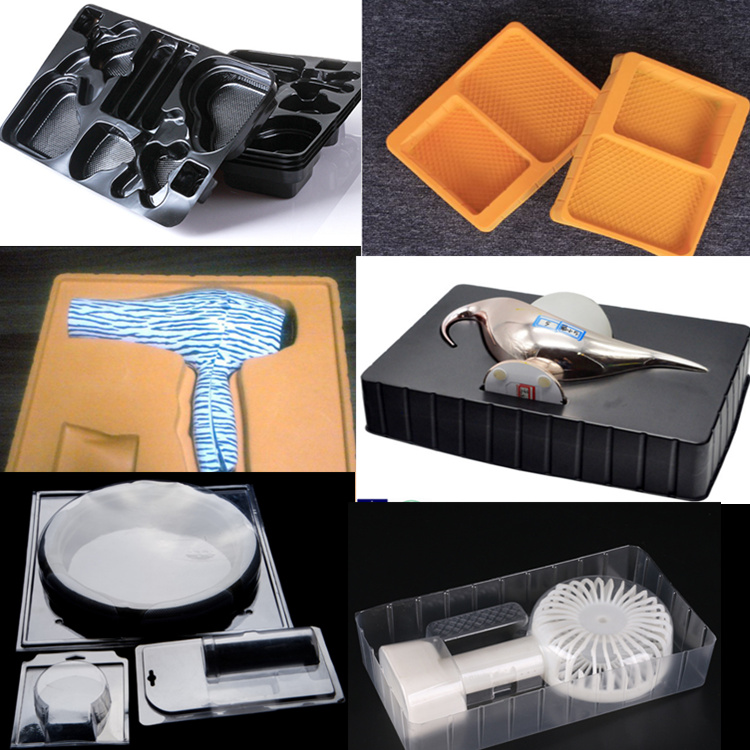 例如你去超/市買回來的雞蛋,就在雞蛋下面就有吸塑托盤,在超/市買回來的不銹鋼餐具就有吸塑托盤,你生活中用到口服液下面不是也有個東西承這的嗎?那也是吸塑托盤。